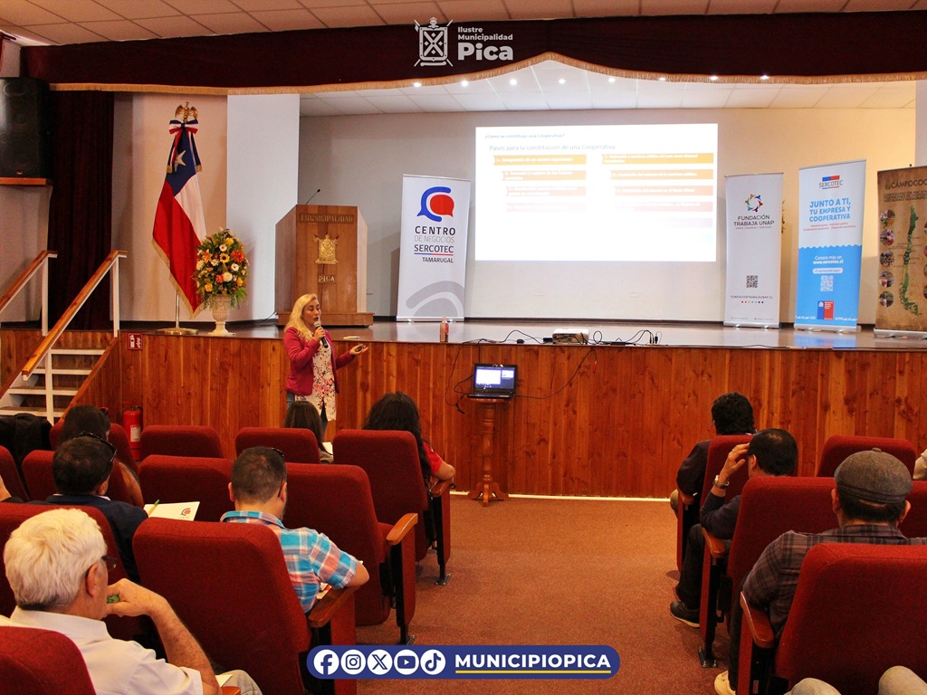 El miércoles 22 de octubre, el Salón O’Higgins de Pica fue sede del seminario “Cooperativismo con foco en las federaciones de cooperativas”, organizado por SERCOTEC Tamarugal y apoyado por la Oficina de Fomento Productivo de la Municipalidad de Pica.
