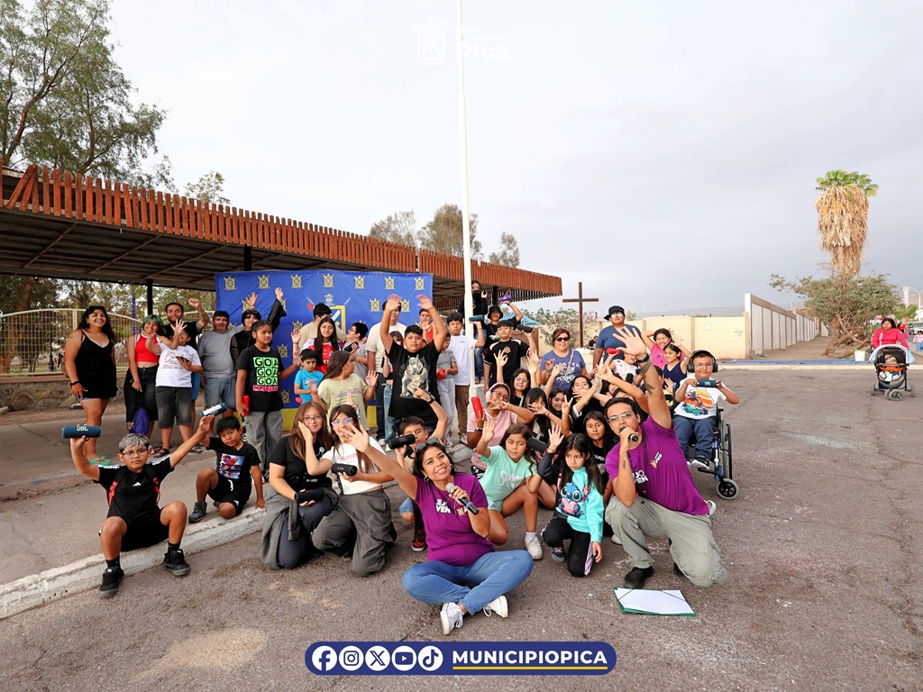 El frontis del Parque Juan Márquez se convirtió en el punto de encuentro de niños y jóvenes de la comuna con la actividad “Un solo sonido, una comuna”, iniciativa organizada por la Municipalidad de Pica que buscó conectar la mayor cantidad de parlantes a una sola fuente musical, llenando la tarde de sonido, energía y buena música.